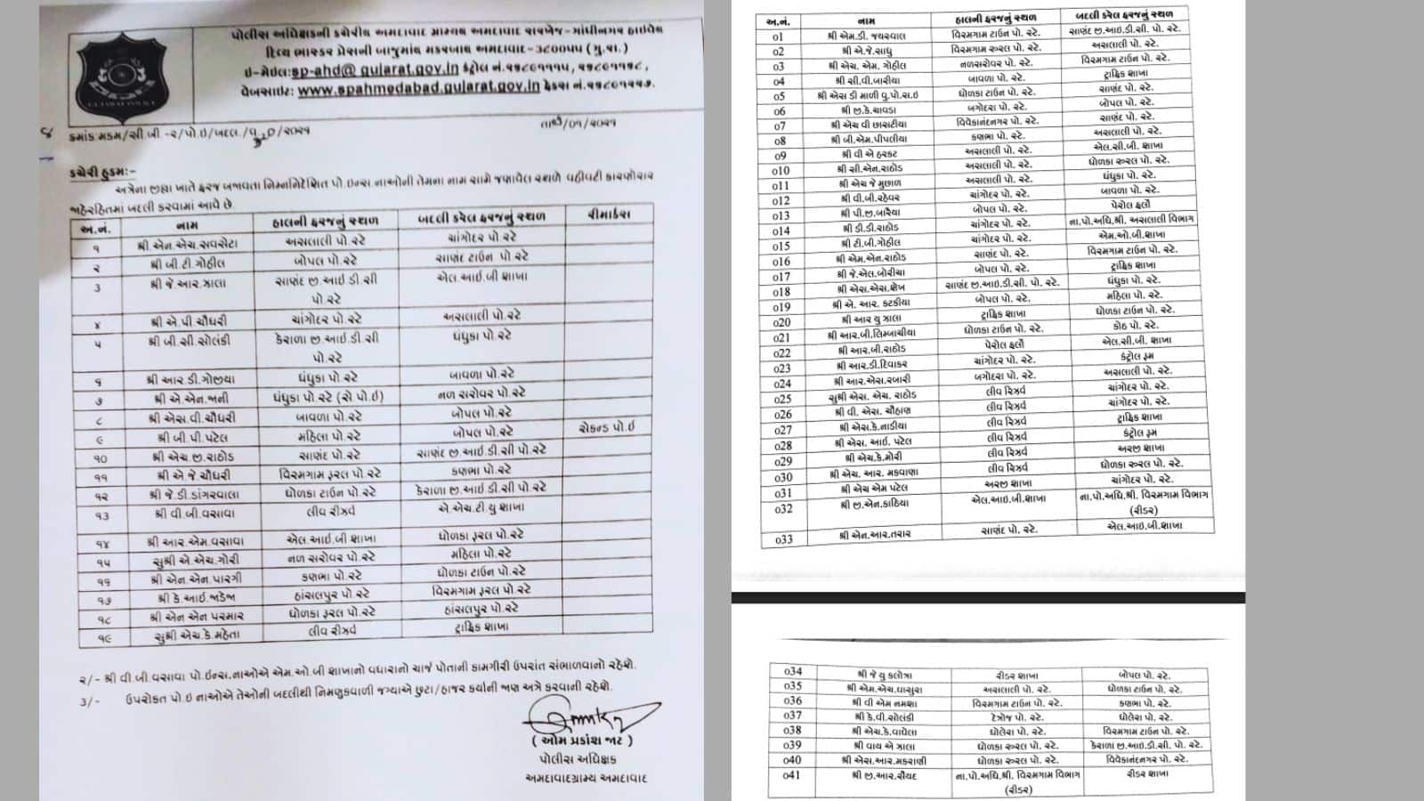 અમદાવાદ ગ્રામ્ય પોલીસના 19 PI અને 41 PSIની બદલી, જુઓ લિસ્ટ | અમદાવાદ