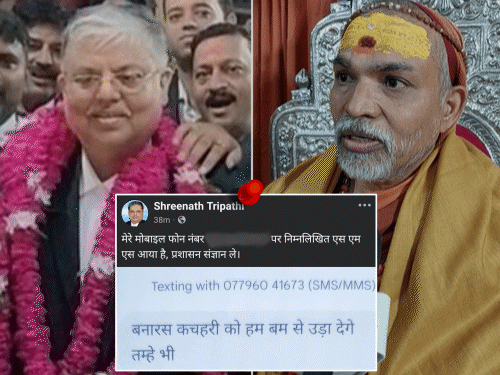 શંકરાચાર્ય સ્વામી અવિમુક્તેશ્વરાનંદના વકીલ શ્રીનાથ ત્રિપાઠીને જાનથી મારી નાખવાની ધમકી મળી છે. બુધવારે મોડી રાત્રે 2:30 વાગ્યે ત્રિપાઠીને તેમના મોબાઇલ ફોન પર ધમકીભર્યો મેસેજ મળ્યો. મેસેજમાં લખ્યું હતું કે, “બનારસ કોર્ટની સાથે તને પણ બોમ્બથી ઉડાવી દઈશું.” શ્રીનાથ ત્રિપાઠી શંકરાચાર્ય સામે POCSO એક્ટ કેસ સંભાળી રહ્યા છે. શ્રીનાથ ત્રિપાઠીએ પોતે પોતાના સોશિયલ મીડિયા એકાઉન્ટ પર SMSનો સ્ક્રીનશોટ શેર કર્યો છે. ધમકી મળ્યા બાદ સુરક્ષા એજન્સીઓને એલર્ટ કરવામાં આવી છે. મોકલનારની ઓળખ કરવામાં આવી રહી છે. છેલ્લા 14 દિવસમાં આ ચોથી વખત છે જ્યારે વારાણસી કોર્ટને ઉડાવી દેવાની ધમકી મળી છે. મંગળવારે પણ આ પહેલા ધમકીભર્યો ઈમેલ આવ્યો હતો. આ દરમિયાન, પ્રયાગરાજ પોલીસ છેલ્લા ચાર દિવસથી વારાણસીમાં કેમ્પિંગ કરી રહી છે. તેઓ તેમની પૂછપરછ કરી શકે છે, પરંતુ હજુ સુધી આશ્રમ પહોંચ્યા નથી. એવું માનવામાં આવે છે કે પોલીસ સંપૂર્ણ તૈયારી અને હોમવર્ક પછી જ શંકરાચાર્ય અથવા તેમના શિષ્યોની પૂછપરછ કરશે. બુધવારે, શંકરાચાર્ય સ્વામી અવિમુક્તેશ્વરાનંદ વિરુદ્ધ બાળકોના યૌન શોષણનો કેસ દાખલ કરનારા આશુતોષ મહારાજે પ્રયાગરાજમાં મીડિયા સાથે વાત કરી હતી. તેમણે કહ્યું હતું કે, “અવિમુક્તેશ્વરાનંદે મધ્યપ્રદેશ, ઉત્તરાખંડ અને વારાણસીના મઠો અને આશ્રમોમાં વિદ્યાર્થીઓનું યૌન શોષણ કર્યું હતું. અમારી પાસે બધા પુરાવા છે. મેડિકલ તપાસમાં વિદ્યાર્થીઓ સાથે ખરાબ કૃત્યની પુષ્ટિ થઈ છે. ટૂંક સમયમાં ન્યાય મળશે.”