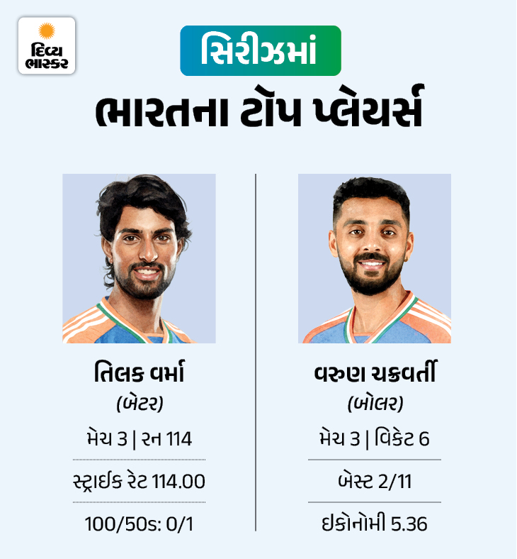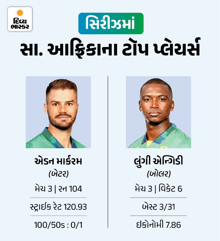 5 મેચની સિરીઝમાં ટીમ ઇન્ડિયા 2-1થી આગળ છે. ભારતે પ્રથમ મેચ 101 રનથી જીતી હતી, ત્યારબાદ સાઉથ આફ્રિકાએ મુલ્લાંપુરમાં રમાયેલી બીજી મેચમાં 51 રનથી જીતીને વાપસી કરી, પરંતુ ત્રીજી મેચમાં ધર્મશાલામાં ભારતે 7 વિકેટથી જીત મેળવીને ફરીથી લીડ મેળવી લીધી.