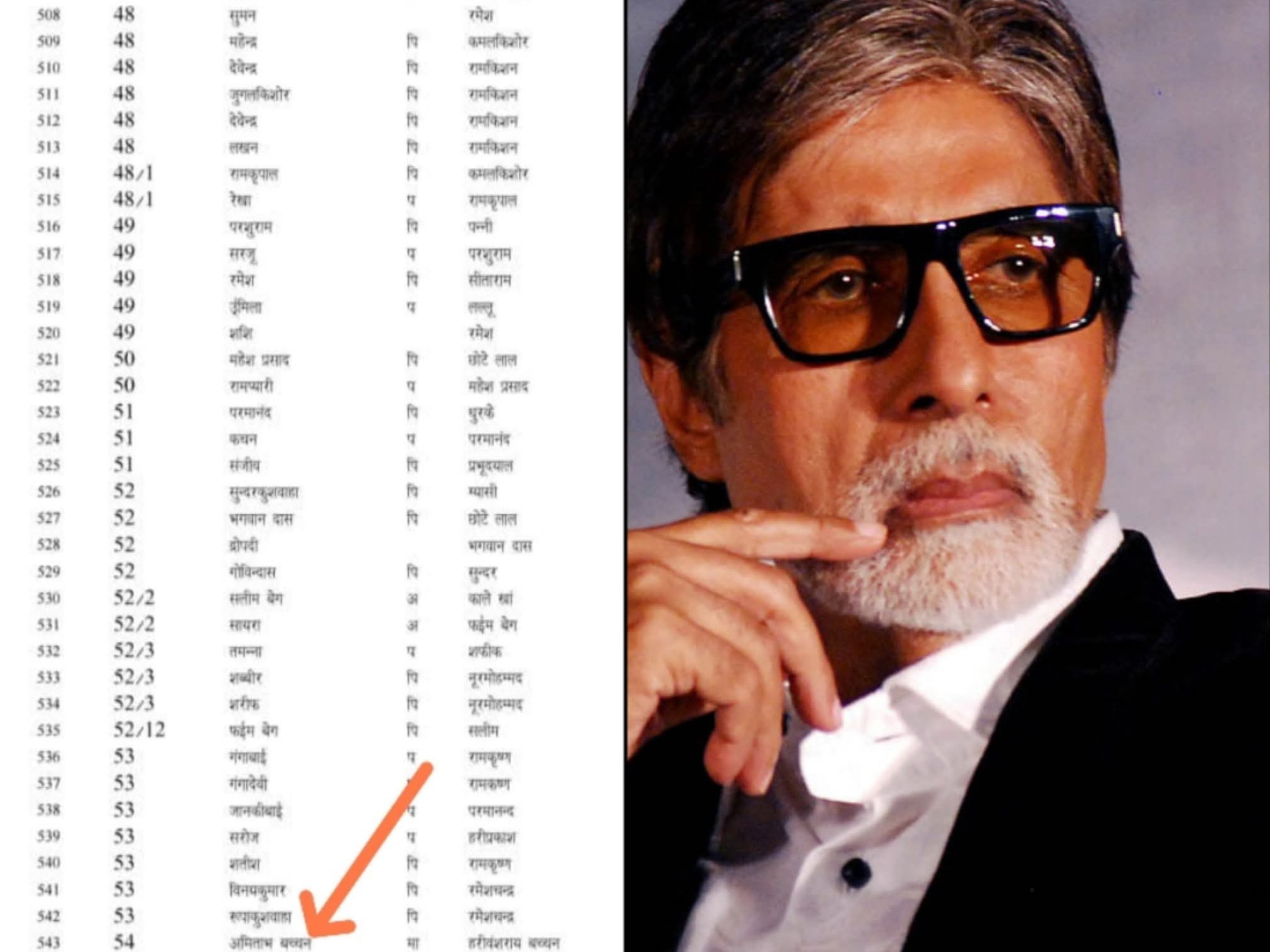 ઓરછા ગેટ બહારના કછિયાના મહોલ્લામાં મતદાર યાદીમાં અમિતાભ બચ્ચન પુત્ર હરિવંશરાય બચ્ચનનું નામ મળ્યું છે. મતદાર યાદીમાં તેમનો મકાન નંબર 54 નોંધાયેલો છે. સાથે જ તેમની ઉંમર યાદી મુજબ 76 વર્ષ છે.