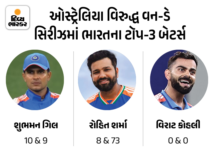 વન-ડે ક્રિકેટને ટોચના ત્રણ બેટર્સની રમત તરીકે ઓળખવામાં આવે છે. જો ટોચના ત્રણમાંથી એક પણ બેટર સદી ફટકારે છે, તો ટીમ માટે મોટો સ્કોર લગભગ નક્કી છે, પરંતુ ભારતના ટોચના ત્રણ બંને મેચમાં કંઈ ખાસ કરી શક્યા નહીં. કેપ્ટન શુભમન ગિલે પર્થમાં 10 અને એડિલેડમાં 9 રન બનાવ્યા. વિરાટ કોહલી બંને વખત શૂન્ય પર આઉટ થયો. રોહિત શર્માએ એડિલેડમાં સારી બેટિંગ કરી હતી, પરંતુ તે પણ પર્થમાં નિષ્ફળ ગયો. આનો અર્થ એ થયો કે બે મેચમાં, ભારતના ટોચના ત્રણ બેટર્સે કુલ 6 ઇનિંગ્સમાં ફક્ત એક જ અડધી સદી ફટકારી હતી. બે મેચમાં, ત્રણેય ખેલાડીઓ ફક્ત 100 રન બનાવી શક્યા.