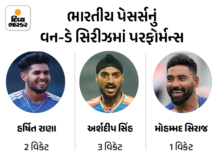 ભારતના ઝડપી બોલરો અનુકૂળ પરિસ્થિતિઓમાં પણ સારું પ્રદર્શન કરવામાં નિષ્ફળ રહ્યા. અર્શદીપ સિંહ અને હર્ષિત રાણાએ બે મેચમાં ફક્ત પાંચ વિકેટ લીધી. મોહમ્મદ સિરાજ બે મેચમાં એકપણ વિકેટ લઈ શક્યો નહીં. આ દરમિયાન, ઓસ્ટ્રેલિયાના ઝડપી બોલરોએ 11 વિકેટ લીધી.
