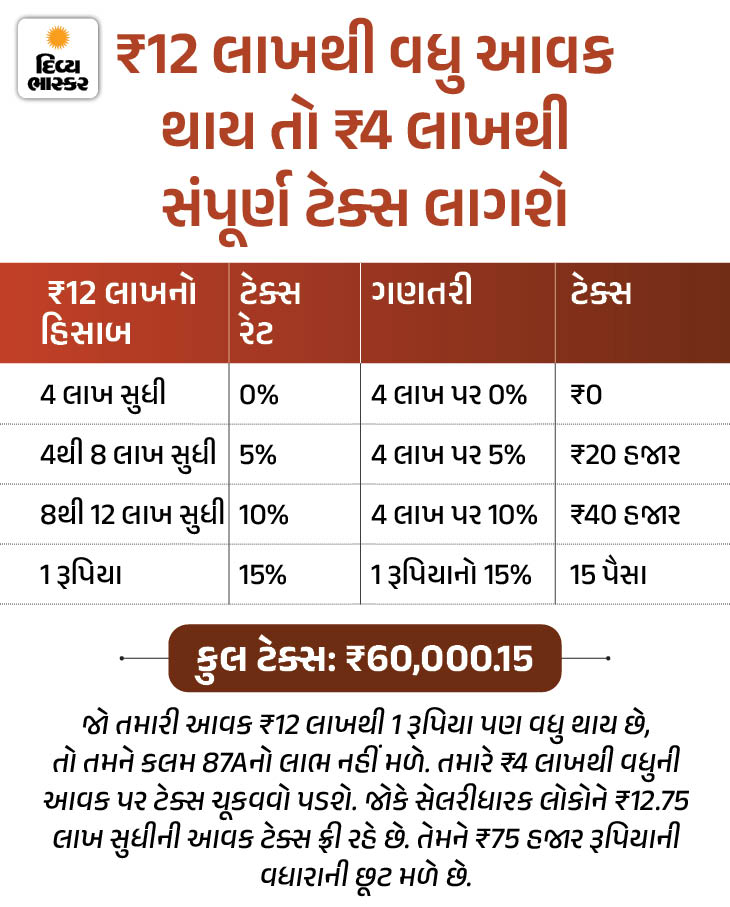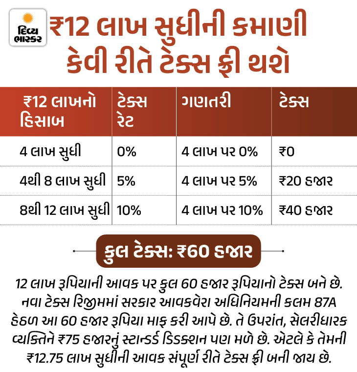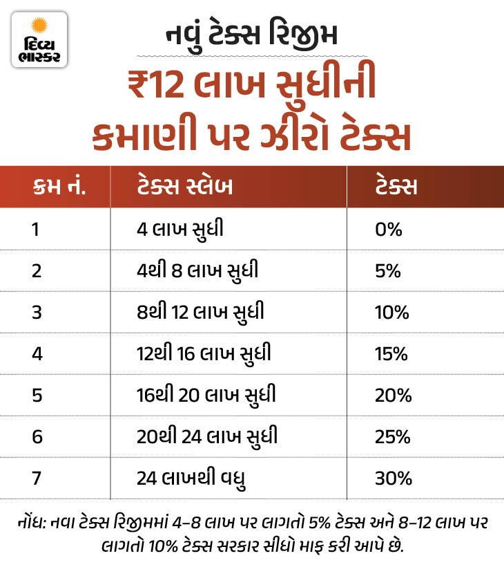 બીજી તરફ ન્યૂ ટેક્સ રિજીમ પસંદ કરવા પર પહેલાની જેમ જ ₹4 લાખ સુધીની આવક પર ટેક્સ ચૂકવવો પડશે નહીં. આમાં ઇનકમ ટેક્સ એક્ટની કલમ 87A હેઠળ પગારદાર વ્યક્તિ ₹12.75 લાખ સુધીની આવક પર અને અન્ય લોકો ₹12 લાખ સુધીની આવક પર ટેક્સ છૂટ મેળવી શકે છે.