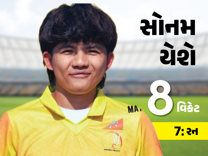 સોનમ યેશે વિશે જાણો સોનમ યેશેએ જુલાઈ 2022માં મલેશિયા સામે ટી20 ઈન્ટરનેશનલ ડેબ્યૂ કર્યું હતું. ત્યારથી અત્યાર સુધીમાં તેણે 34 મેચની 33 ઇનિંગ્સમાં 37 વિકેટ લીધી છે. તેની સરેરાશ 17.37 અને ઇકોનોમી 5.69 છે. તેના નામે ટી20 ક્રિકેટમાં એક ચાર વિકેટ અને એક પાંચ વિકેટ હોલ પણ નોંધાયેલ છે.
