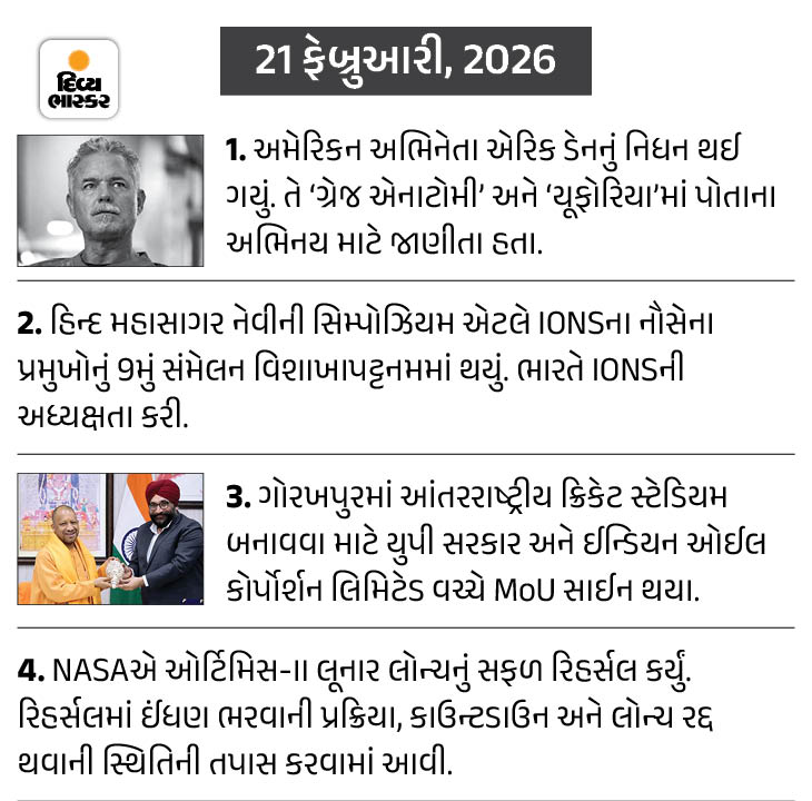 5.બિઝનેસ : AI સમિટમાં ભારત-અમેરિકાનો ‘પેક્સ સિલિકા’ સમજુતી:ચિપ સેક્ટરમાં 10 લાખ નોકરીઓ આવશે, મોદી-ટ્રમ્પ મુલાકાત ટૂંક સમયમાં થશે વાંચો સંપૂર્ણ સમાચાર