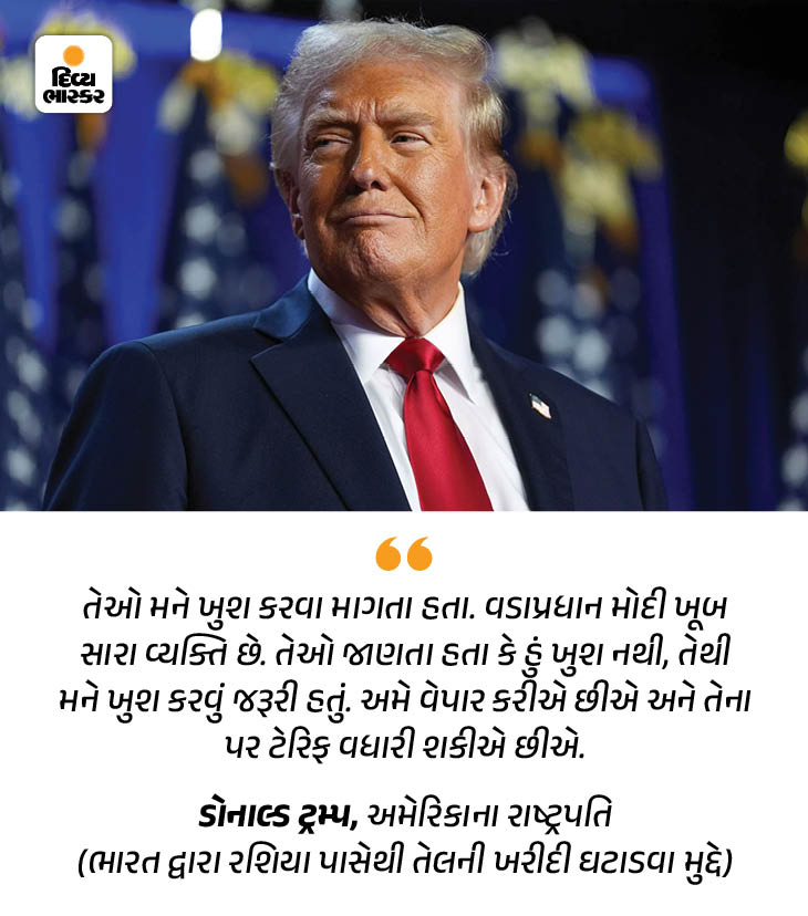 4.ઈન્ટરનેશનલ : મોદી સારા માણસ…પણ મને ખુશ કરવો જરૂરી…:ટ્રમ્પે ફરી ધમકી આપી, કહ્યું- જો ભારત રશિયન તેલ મુદ્દે અમારી મદદ નહીં કરે તો અમે ટેરિફ વધારીશું વાંચો સંપૂર્ણ સમાચાર