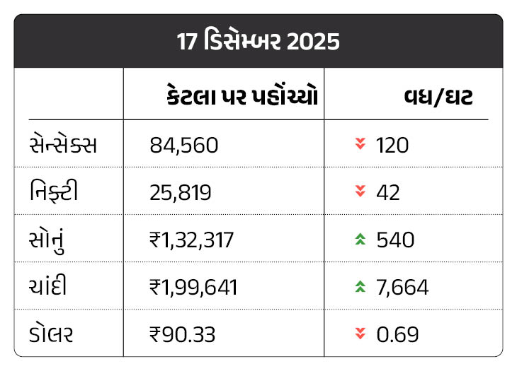 જ્યારે, સોનું આજે 936 રૂપિયા વધીને 1,32,713 રૂપિયા પ્રતિ 10 ગ્રામ પર પહોંચી ગયું છે. આ પહેલા તે 1,31,777 રૂપિયા પર હતું. જ્યારે સોનાએ 15 ડિસેમ્બરે 1,33,442 રૂપિયા પ્રતિ 10 ગ્રામનો ઓલ ટાઈમ હાઈ બનાવ્યો હતો. વાંચો સંપૂર્ણ સમાચાર