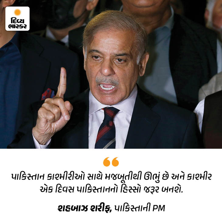 4.ઈન્ટરનેશનલ : પાકિસ્તાની PM બોલ્યા- કાશ્મીર PAKનો હિસ્સો બનશે:કાશ્મીરીઓ સાથે મજબૂતીથી ઊભા છીએ, આ વિસ્તાર પાકિસ્તાનની લાઇફલાઇન છે વાંચો સંપૂર્ણ સમાચાર