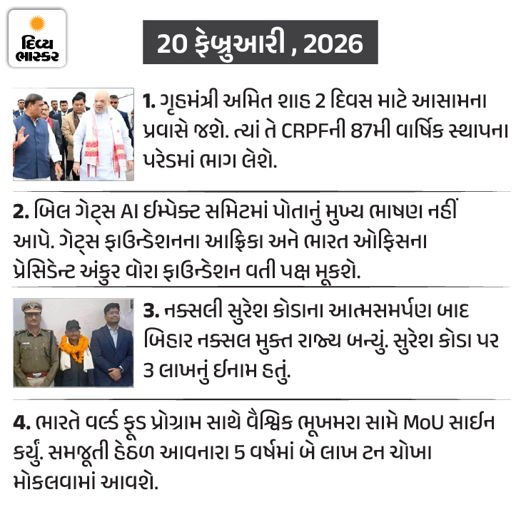 3. ભાજપ અધ્યક્ષ નીતિન નબીન ગુજરાતના ત્રણ દિવસીય પ્રવાસ પર રહેશે.