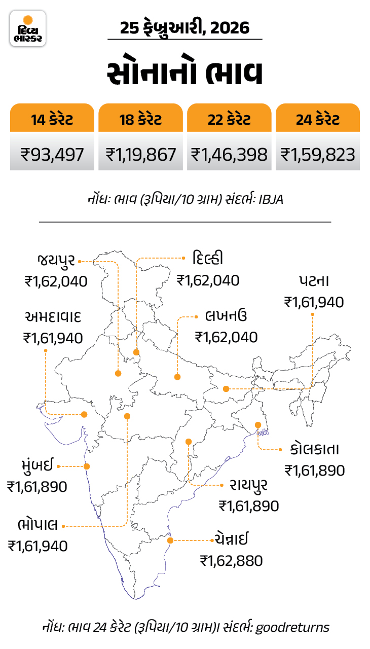 - Gold Silver Price Today 25 February 2026 Update; Gold Rate Surges 582 Silver Price Jumps 6455