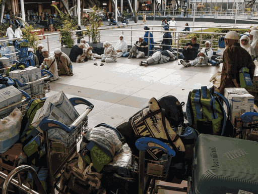 જ્યારે પોતાના સામાન સાથે ઘણા લોકો જમીન પર બેઠેલા જોવા મળ્યા. અમદાવાદના સરદાર વલ્લભભાઈ એરપોર્ટ પર લોકો ઘણા કલાકો સુધી લાઇનોમાં ઊભા રહ્યા.