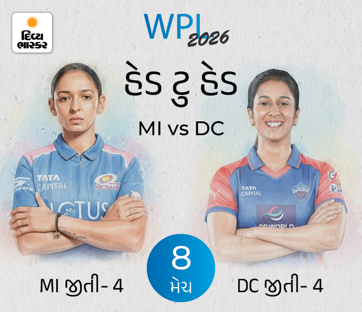 MI-DC હેડ ટુ હેડમાં સરખા મુંબઈ ઈન્ડિયન્સ અને દિલ્હી કેપિટલ્સ વચ્ચે WPLમાં અત્યાર સુધી કુલ 8 મેચ રમાઈ છે. આ મેચમાં બંને ટીમનું પ્રદર્શન સરખું રહ્યું છે. મુંબઈ ઈન્ડિયન્સે 4 મેચ જીતી છે, જ્યારે દિલ્હી કેપિટલ્સને પણ 4 મેચમાં જીત મળી છે.