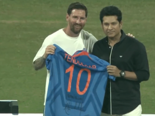 આર્જેન્ટિનાના દિગ્ગજ ફૂટબોલર લિયોનલ મેસ્સી ભારતમાં 3 દિવસના ‘GOAT ઇન્ડિયા’ પ્રવાસે છે. પ્રવાસના બીજા દિવસે તેણે મુંબઈમાં ક્રિકેટના દિગ્ગજ સચિન તેંડુલકર સાથે મુલાકાત કરી. સચિને વાનખેડે સ્ટેડિયમમાં તેમને પોતાનું નામ લખેલી ટીમ ઇન્ડિયાની જર્સી ભેટ આપી.