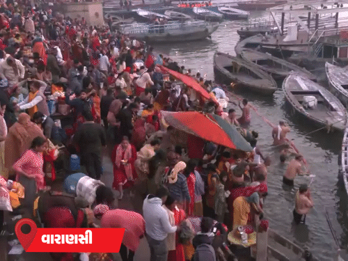 યુપીના ગાઝીપુરમાં ગંગા ઘાટ પર હજારો શ્રદ્ધાળુઓ સ્નાન કરવા પહોંચ્યા