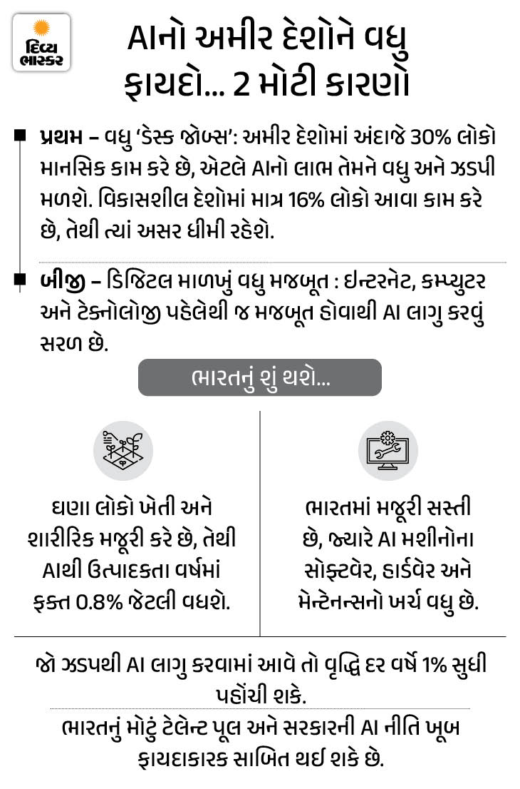 જોકે, તેમાં ચેતવણી પણ છે કે આ ફાયદો બધાને સરખો નહીં મળે. ધનિક દેશો વધુ ફાયદામાં રહેશે. AIને કારણે મહિલાઓ, યુવાનો અને ઓછું ભણેલા લોકો સૌથી વધુ પ્રભાવિત થશે.