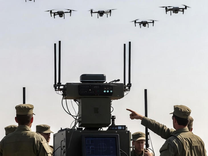 તે ડ્રોનના કમ્યુનિકેશનને અવરોધીને તેને હવામાં રોકાવા, પાછા ફરવા અથવા લેન્ડ કરવા મજબૂર કરે છે.