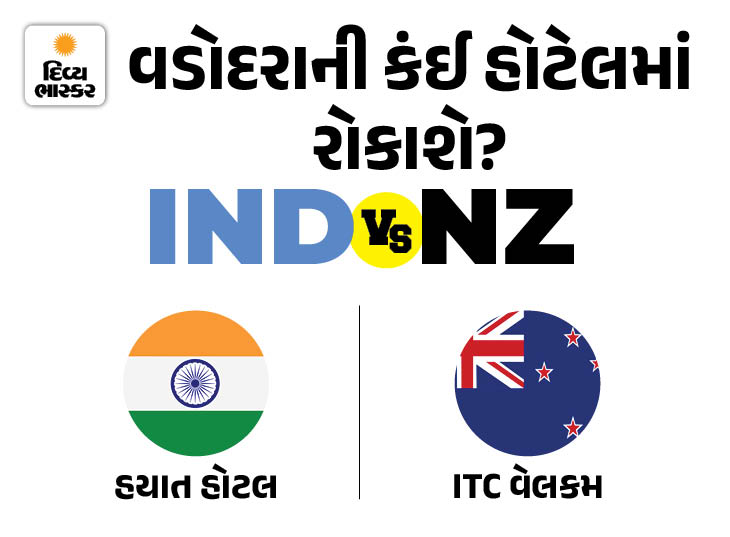 આ બે હોટલમાં બંને ટીમો રોકાશે વડોદરામાં બંને ટીમ માટે જુદી જુદી હોટલ બુક કરાઈ છે, જેમાં ભારતની ટીમ હયાત હોટલમાં રોકાશે, જ્યારે ન્યૂઝીલેન્ડની ટીમ આઇટીસી વેલકમમાં રોકાશે. જ્યારે મેચ ઓફિશિયલ્સ માટે આઈટીસી વેલકમમાં જ રોકાવાનું આયોજન કરાયું છે.