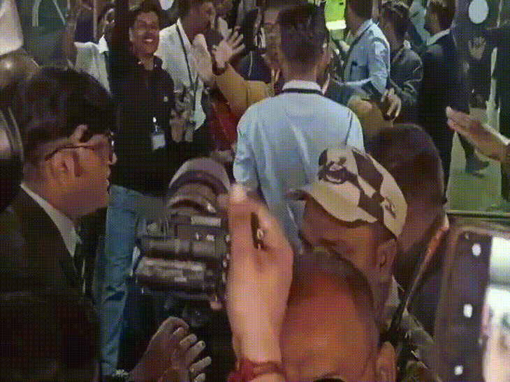 વિરાટ કોહલીને જોવા એરપોર્ટ પર ભારે ભીડ જામી ખેલાડીઓના આગમનને લઈ પ્રશંસકોની ભારે ભીડ એરપોર્ટ પર જોવા મળી હતી. આ ભીડને કંટ્રોલ કરવા ખાનગી બાઉન્સર અને પોલીસનો ચુસ્ત બંદોબસ્ત ગોઠવવામાં આવ્યો હતો. એરપોર્ટ પર કોહલી આવતાં જ કોહલી કોહલીની બૂમો પાડવા લાગી હતી.