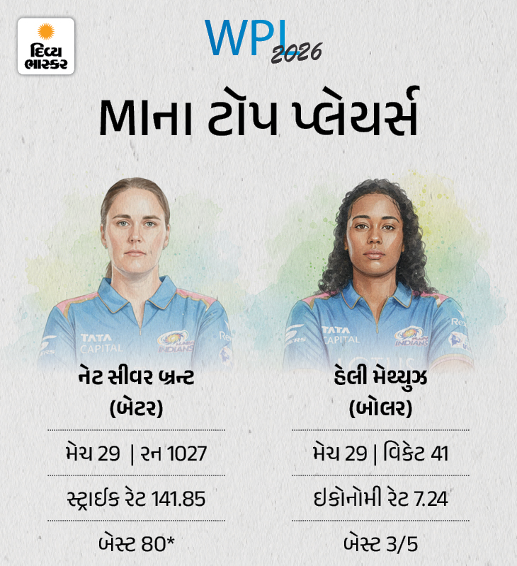 મુંબઈની નેટ સિવર-બ્રન્ટે સૌથી વધુ રન બનાવ્યા છે. તેના નામે 29 મેચમાં 1027 રન છે. જ્યારે, હેલી મેથ્યુઝે સૌથી વધુ વિકેટ લીધી છે. તેના નામે 29 મેચમાં 41 વિકેટ છે.