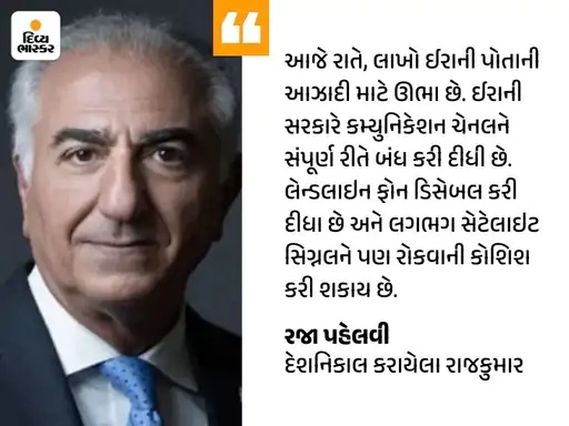 પહેલવીએ લખ્યું, ‘હું રાષ્ટ્રપતિ ટ્રમ્પની પ્રશંસા કરું છું. આઝાદ વિશ્વના નેતા તરીકે, તેમણે ફરી એકવાર સરકારને જવાબદાર ઠેરવવાની જરૂરિયાત પર ભાર મૂક્યો છે. હવે સમય આવી ગયો છે કે અન્ય લોકો તેમના પગલે ચાલે, પોતાનું મૌન તોડે, અને મજબૂતીથી ઈરાની લોકોના સમર્થનમાં કાર્યવાહી કરે.’