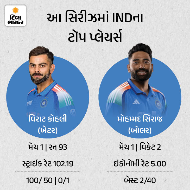 વિરાટે પહેલી મેચમાં 93 રન બનાવ્યા પહેલી મેચમાં વિરાટ કોહલીએ સદી તો ન ફટકારી પરંતુ 93 રનની શાનદાર ઇનિંગ રમી હતી. કોહલી સિરીઝમાં ટૉપ સ્કોરર છે. કોહલી ગયા વર્ષે પણ ટીમ માટે સૌથી વધુ 651 રન બનાવનાર ખેલાડી હતો. બીજી તરફ, પ્રથમ મેચમાં મોહમ્મદ સિરાજે બોલિંગમાં સારું પ્રદર્શન કર્યું હતું અને 2 વિકેટ ઝડપી હતી.