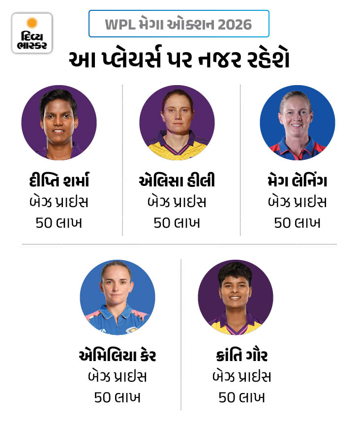 Women’s Premier League (WPL) Mega Auction Season 4 Today LIVE Update | આજે WPL મેગા ઓક્શન, 277 પ્લેયર્સ પર બોલી લાગશે: યુપીનું પર્સ સૌથી મોટું, દીપ્તિ-હીલી કરોડપતિ બની શકે; 10 પોઈન્ટ્સમાં બધું જ જાણો