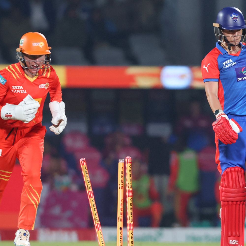 175 રનના ટાર્ગેટ સામે દિલ્હી કેપિટલ્સે સતત વિકેટ ગુમાવી. શેફાલી વર્મા 14, લિઝેલ લી 11, લૌરા વોલ્વાર્ટ 24, જેમિમાહ રોડ્રિગ્સ 16 અને શિનેલે હેનરી 9 રન બનાવીને આઉટ થઈ ગઈ. મેરિઝન કેપ ખાતું પણ ખોલી શકી નહીં. ટીમે 100 રન પર 6 વિકેટ ગુમાવી દીધી. નિકી પ્રસાદે છેલ્લે સ્નેહ રાણા સાથે લડત આપી, પરંતુ તે પણ ટીમને જીત અપાવી શકી નહીં. નિકીએ 47 અને સ્નેહે 29 રન બનાવ્યા. ગુજરાત માટે સોફી ડિવાઇને 4 અને રાજેશ્વરી ગાયકવાડે 3 વિકેટ લીધી. એશ્લે ગાર્ડનરને 1 વિકેટ મળી. ટૉપ-2માં પહોંચી ગુજરાત